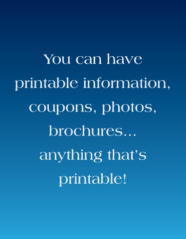 You can have printable information, coupons, photos, brochures... anything that’s printable!